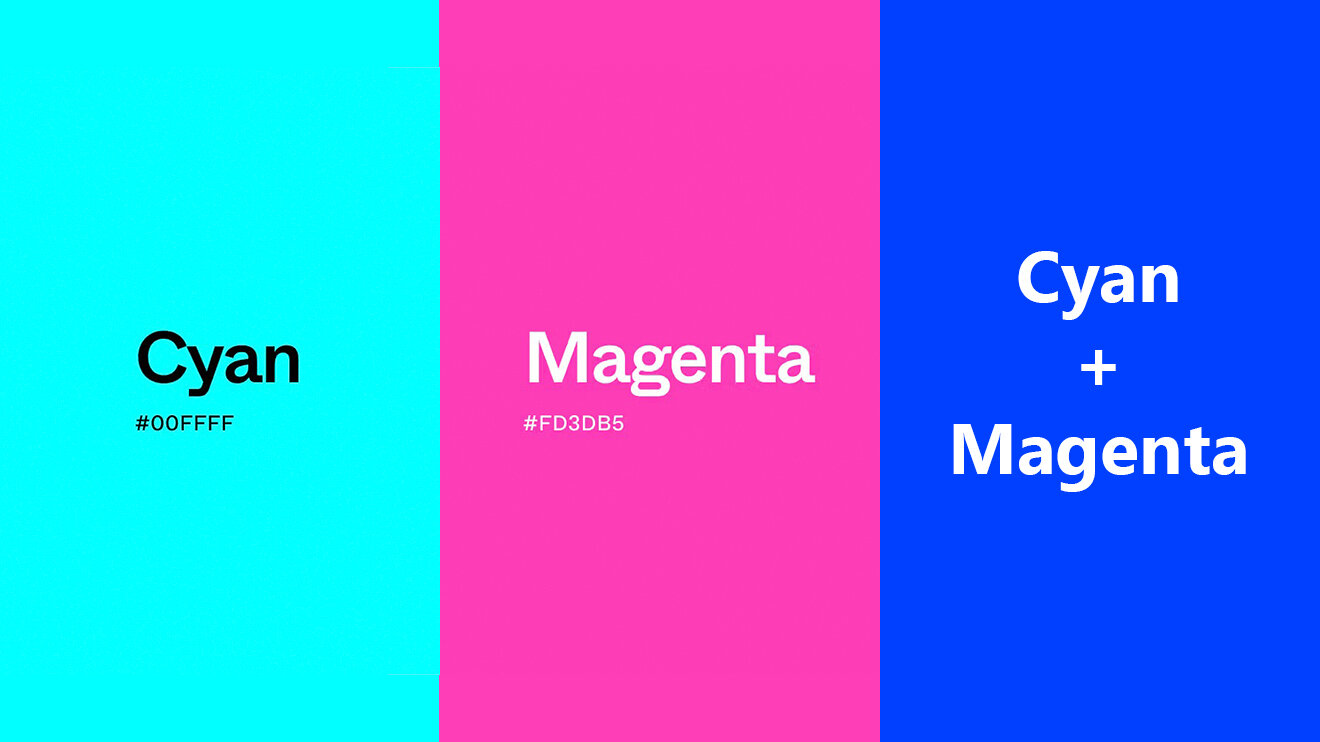 - При комбинировании циана с магентой получается насыщенный фиолетовый цвет.